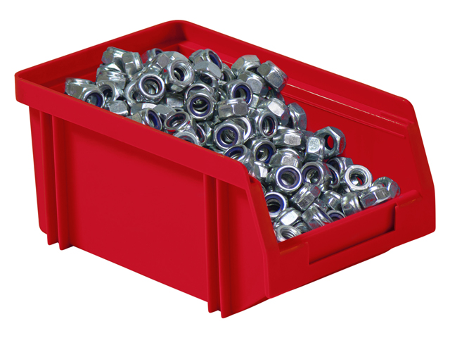 Caja de plástico apilable con abertura frontal PLASTIBOX | Dim.: 160x105x75h mm. | Color: rojo