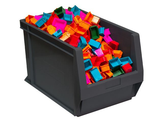 Caja de plástico apilable con abertura frontal PLASTIBOX | Dim.: 500x130x300h mm. | Color: gris antracita