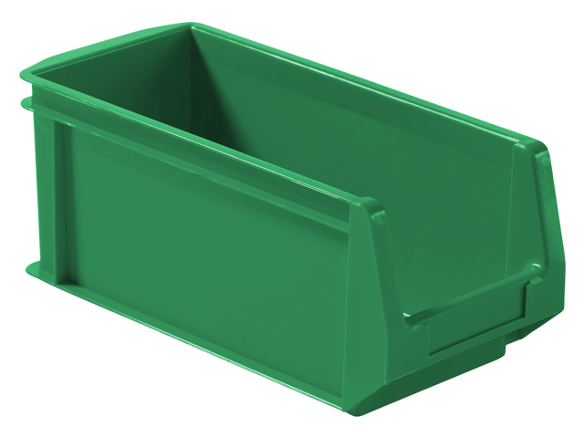 Caja de plástico apilable con abertura frontal PLASTIBOX | Dim.: 260x120x110h mm. | Color: verde