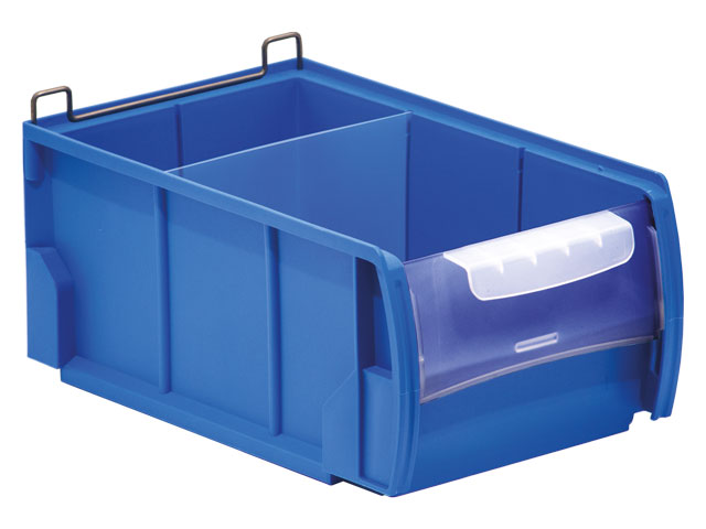 Destaca por su versatilidad y se convierte en un cajón ideal para el almacenaje de piezas pequeñas gracias a sus separadores transversales que permiten guardar diferentes tipos de material y artículos en su interior. Completan la gama de accesorios la tapa frontal y el tope trasero que aseguran la carga en estanterías metálicas con estantes-guía o estanterías metálicas de carga ligera con estantes lisos.