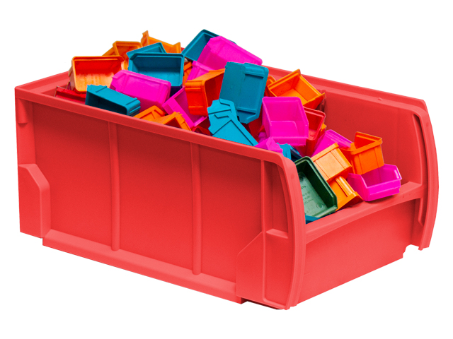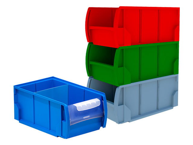 Destaca por su versatilidad y se convierte en un cajón ideal para el almacenaje de piezas pequeñas gracias a sus separadores transversales que permiten guardar diferentes tipos de material y artículos en su interior. Completan la gama de accesorios la tapa frontal y el tope trasero que aseguran la carga en estanterías metálicas con estantes-guía o estanterías metálicas de carga ligera con estantes lisos.