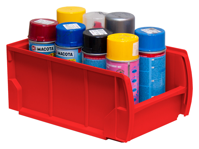 Caja de plástico apilable con abertura frontal PLASTIBOX | Dim.: 335x210x150h mm. | Color: rojo