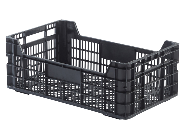 Caja de plástico rejada apilable CESTABOX | Dim.: 500x300x180h mm. | Color: negro