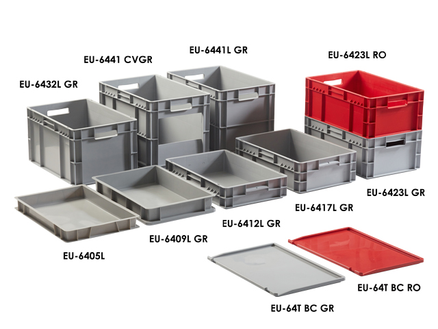 Caja de plástico apilable Norma Europa EUROBOX | Dim.: 600x400x64h | Color: gris