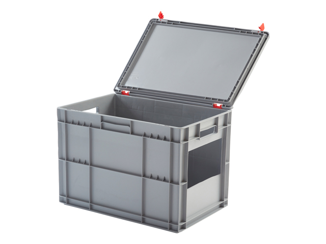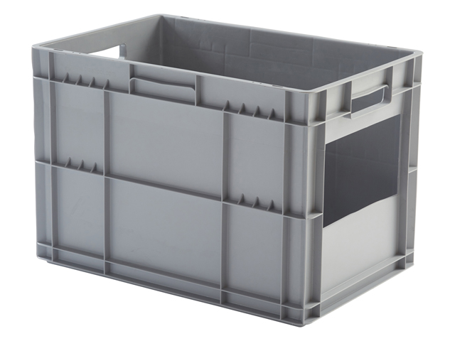 Caja de plástico apilable con ventana Norma Europa EUROBOX | Dim.: 600x400x410h | Color: gris
