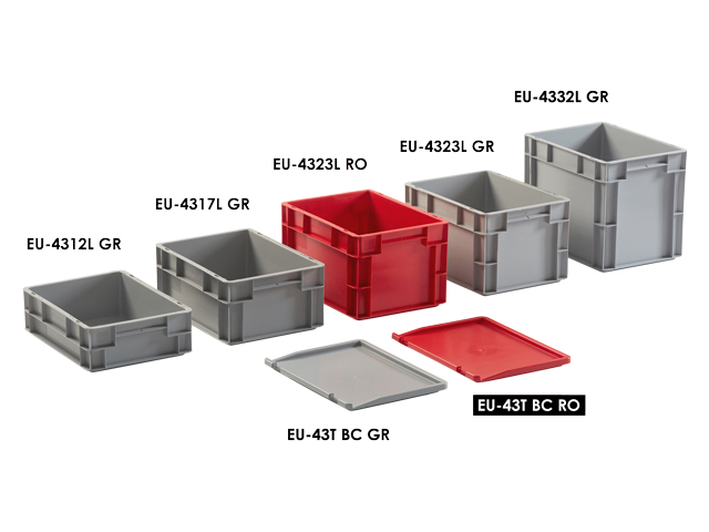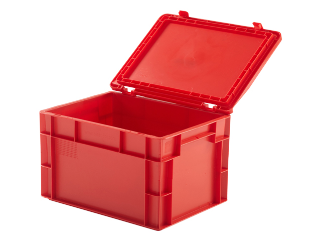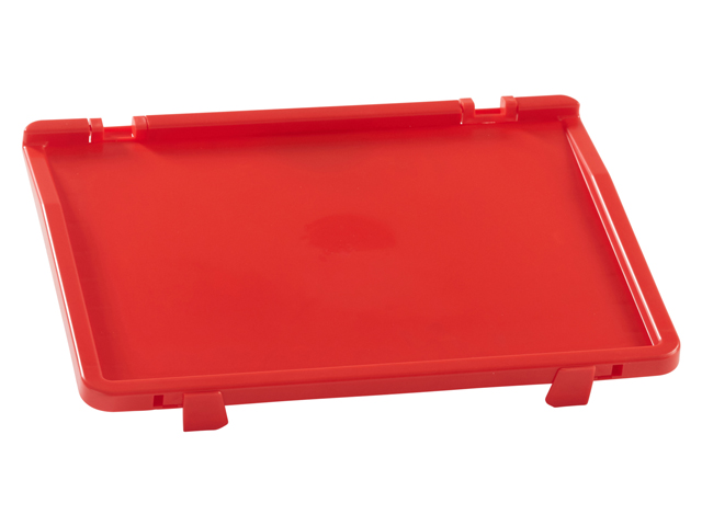 Tapa de plástico con 2 clips de cierre y 2 bisagras para cajas EUROBOX 400x300 | Dim.: 400x300x25h mm. | Color: rojo