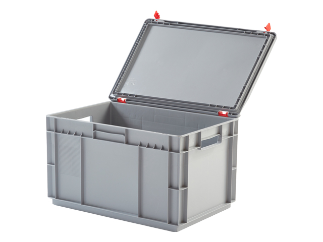 Tapa plástica para toda la gama de cajas Norma Europa EUROBOX de 600x400 mm. Equipada con 2 clips de cierre y 2 bisagras mantienen el interior de la caja libre de suciedad, polvo o elementos externos conviertiéndose en un contenedor idóneo para el transporte seguro de todo tipo de mercancías.