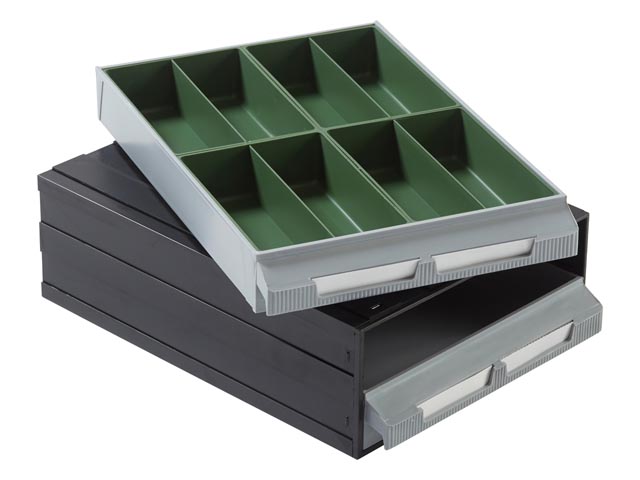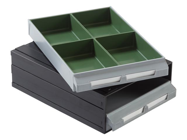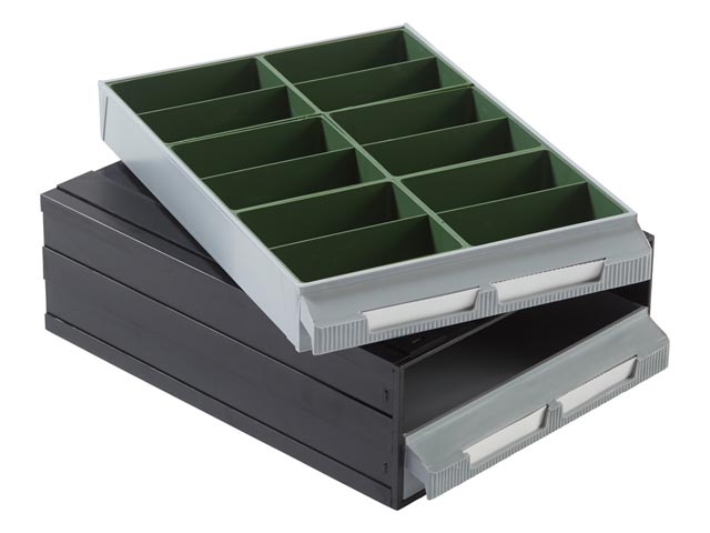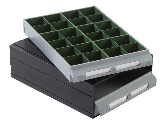 Las cajoneras COMBIBOX son un auxiliar indispensable en aquellos lugares de trabajo donde se necesita agrupar y clasificar todo tipo de material pequeño. Ensamblables entre sí mediante un sistema de “cola de milano”, vertical y horizontalmente, sin necesidad de tornillería ni elementos de unión extra, estas cajoneras se convierten en un sistema modular de almacenaje sólido, compacto y sin límites.