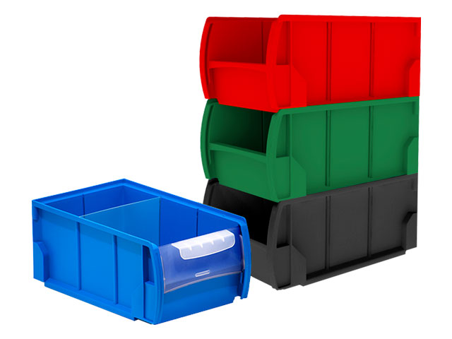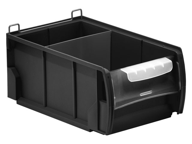 Destaca por su versatilidad y se convierte en un cajón ideal para el almacenaje de piezas pequeñas gracias a sus separadores transversales que permiten guardar diferentes tipos de material y artículos en su interior. Completan la gama de accesorios la tapa frontal y el tope trasero que aseguran la carga en estanterías metálicas con estantes-guía o estanterías metálicas de carga ligera con estantes lisos.