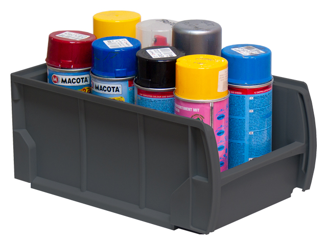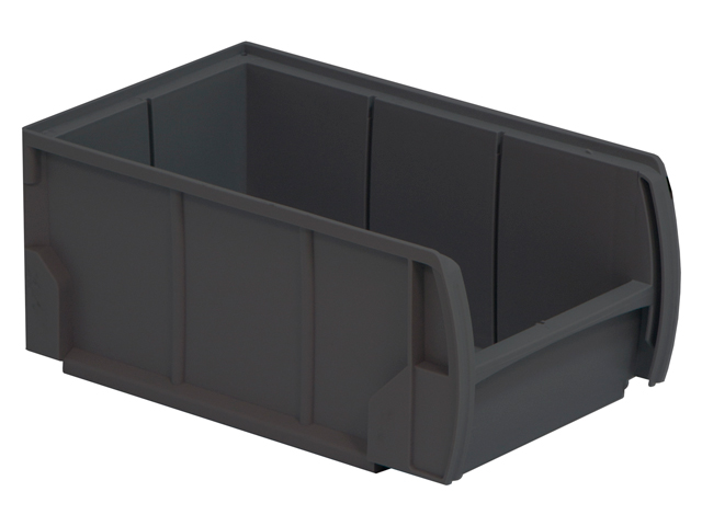 Caja de plástico apilable con abertura frontal PLASTIBOX | Dim.: 335x210x150h mm. | Color: gris oscuro