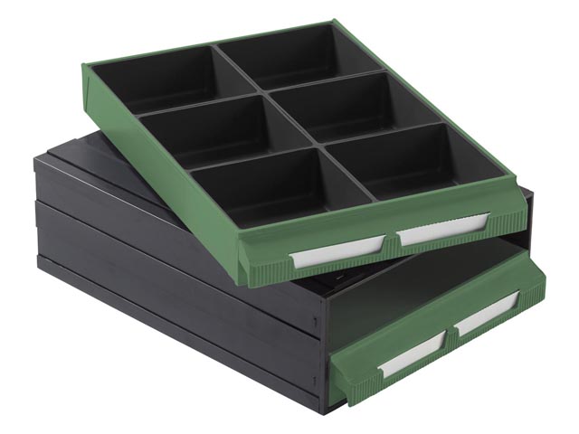 Cubeta de plástico apilable de subdivisión para cajonera COMBIBOX K-8/2 | Dim.: 111x103x40h mm. | Color: antracita