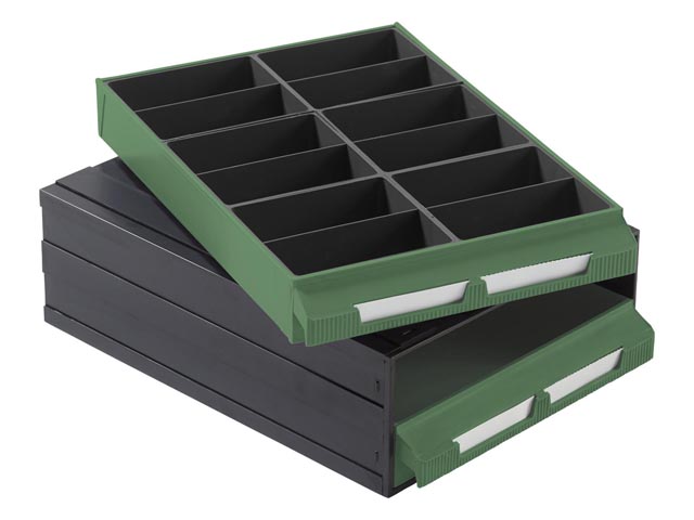 Cubeta de plástico apilable de subdivisión para cajonera COMBIBOX K-8/2 (2 compartimentos) | Dim.: 111x103x40h mm. | Color: antracita
