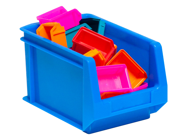 Caja de plástico apilable con abertura frontal PLASTIBOX | Dim.: 190x120x110h mm. | Color: azul